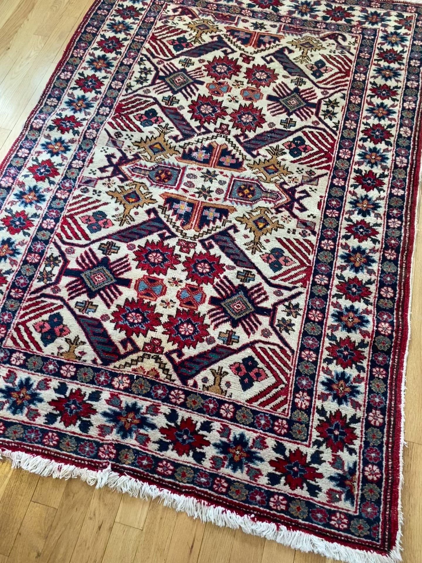Caucasian Bidjov Rug, 3' 8 x 5' 7 Vintage White