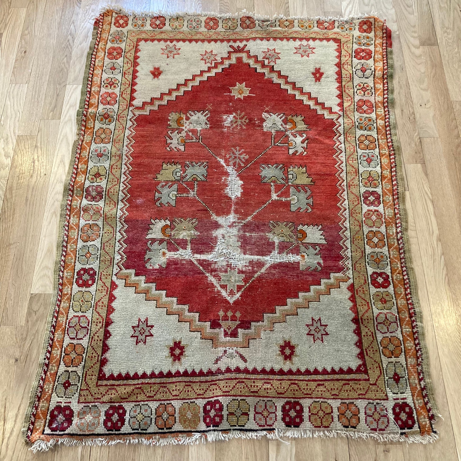 Antique Rug, 3' 1 x 4' 3 Red Turkish